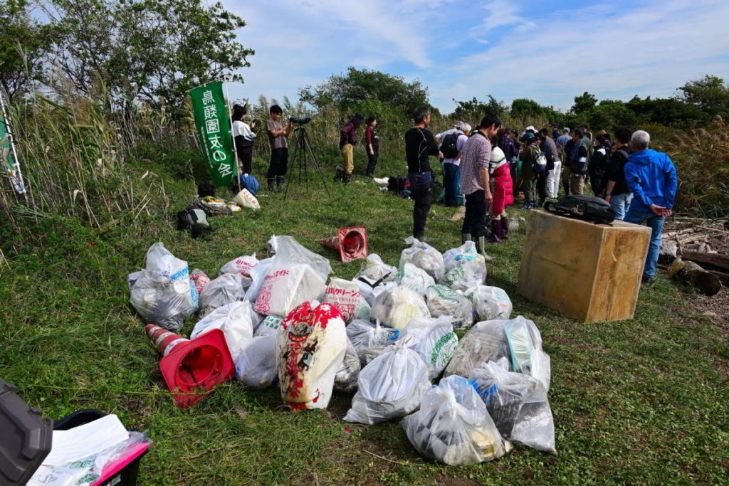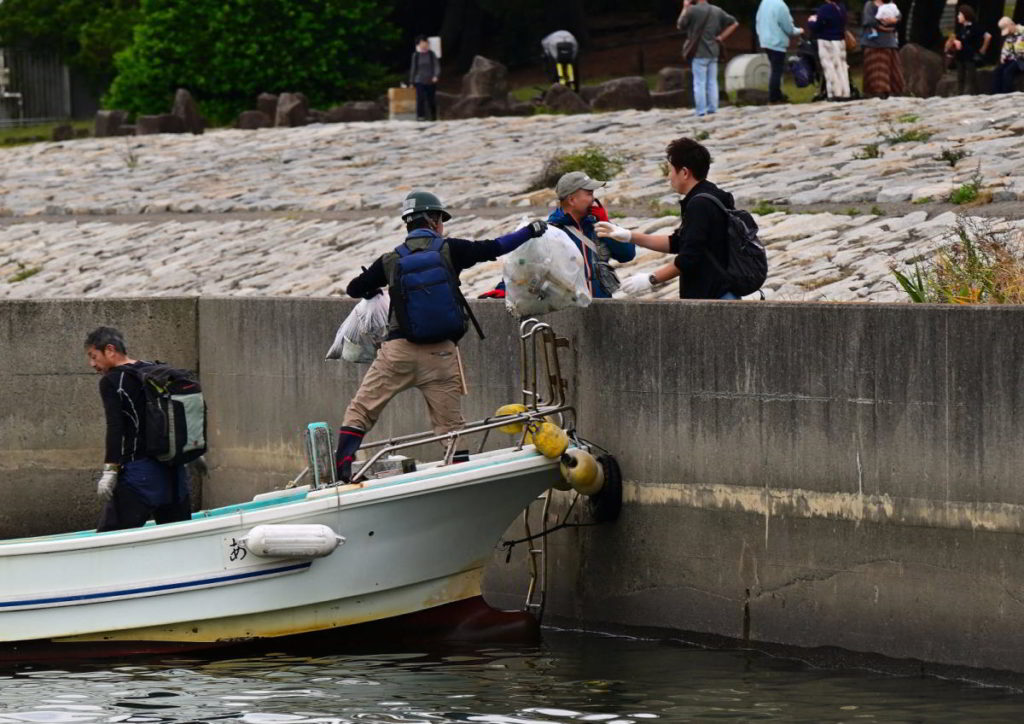 観察会終了後、参加者とスタッフでごみを船着き場まで運びました。