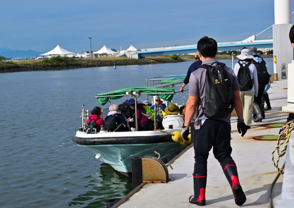 参加者が先に船で引き上げた後、観察会の荷物やごみを船に積み、東なぎさを後にしました。