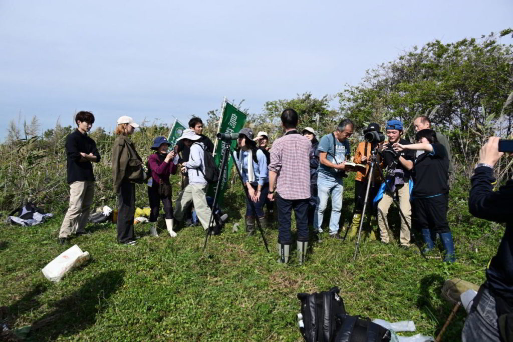 ごみを集めた後に、東なぎさに生息する植物・鳥類・水棲生物の観察会を行うため、会場となる場所の草を刈り、講師や参加者が安全に歩けるようにしました。